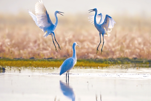 深秋的宿鸭湖,植被茂密,湖水丰盈,成群的白鹭、大雁时而在空中盘旋飞舞,时而在水面嬉戏玩耍,展现勃勃生机。 “越来越多的候鸟选择来此过冬,这就是驻马店生态改善的鲜活名片。”常年在宿鸭湖抓拍候鸟的摄影爱好者张斌说,多年来他跟候鸟一样,按时节蹲点跟拍,“今年雨水丰富,来此越冬的候鸟应该很多,一定有机会拍到珍贵的画面?!?/p> “十四五”时期,驻马店秉持“生态优先、绿色发展”理念,深入开展河湖水生态环境治理,通过清淤扩容、控源截污等综合治理,宿鸭湖成了“鸟类天堂”,每年吸引10多万只鸟类来此越冬,栖息鸟类包括黑颈鹤、白枕鹤、鸿雁、大天鹅等190多种,不仅为城市增添了一份灵动与生机,还成为我市一张亮丽的生态名片。 绘就生态画卷,奏响绿色旋律,交织成一幅美丽动人的乡村画卷。走进汝南县金铺镇姚寨村,映入眼帘的是平整的村道、错落有致的农房、精心打理的小菜园和小花园,昔日污水横流、杂物乱堆的景象已不见踪影。 姚寨村的美丽蝶变,是驻马店推进土壤污染防治和农村环境治理的生动缩影?!笆奈濉逼诩洌沂幸悦览鱿绱褰ㄉ栉ナ郑悼古┐寤肪匙酆险?,1184个行政村实现生活污水治理管控,154个乡镇政府驻地生活污水处理设施实现全覆盖,79个集中式污水处理设施完成整治提升,美丽乡村颜值气质双提升。