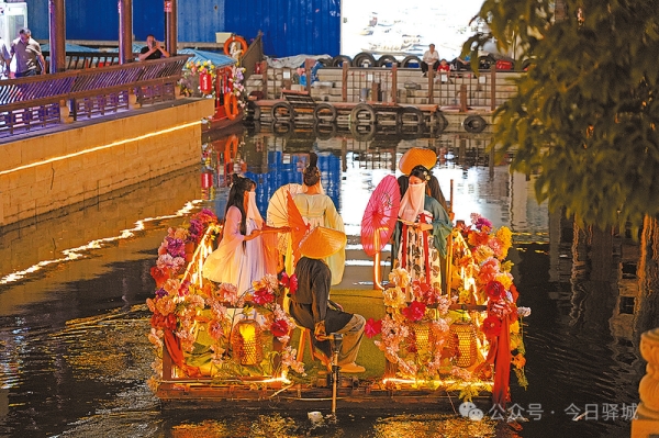 “身着汉服漫步古街,仿佛穿越回古代,这种体验太奇妙了?!比涨?,来自武汉的游客杨明在游览皇家驿站时赞叹道。正如古诗所言“烟火驿城处,时闻市井声”,驻马店作为历史上重要的交通枢纽,因南来北往的信使、官宦在此驻驿歇马而得名。如今,这座古老的驿站在夜色中重焕生机。